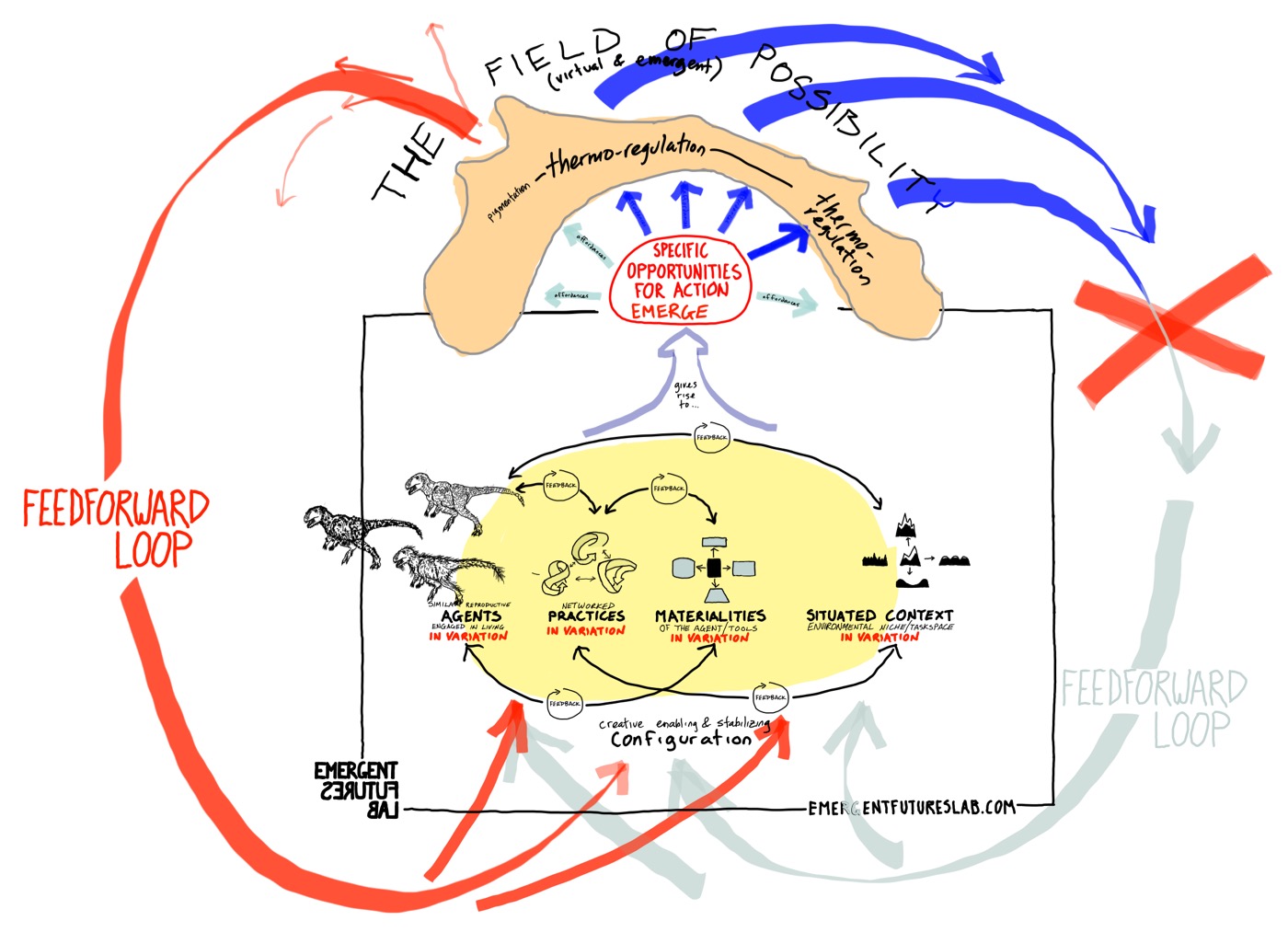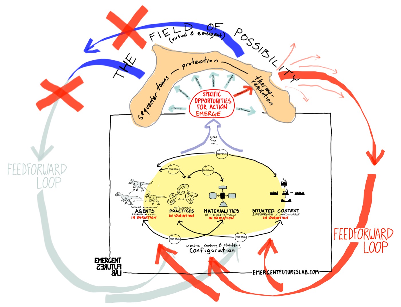…But this function never fully accounts for all of the enactive possibilities – there is always many a marginal slippage and excess of possibility. And then as these become emergent pulls – process loops and loops and loops….
