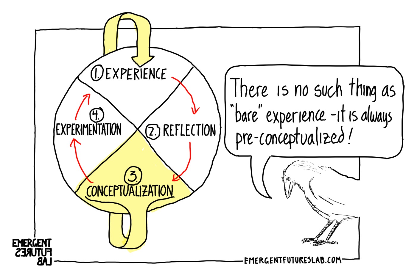 For Kolb and other developers of experiential learning approaches, experience is just something we have, that we can then reflect upon, conceptualize, and then experiment with. But, as we have noted, the first challenge to this model of experience is that what Kolb conceives of as the third stage of engagement is already shaping the first: