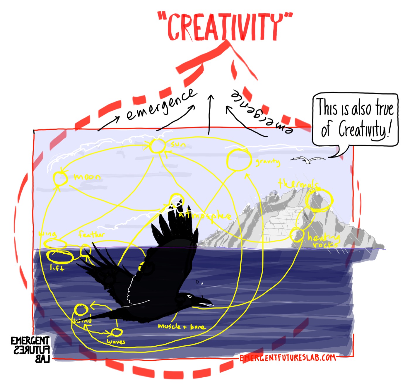 Then, by the end of the workshop, everyone will have emerged from a genuine collaborative experience of relational and ecosystemic creativity. So when we explore this analogy between flight and creativity, no one tends to disagree with our ecosystem, relational, and emergent conclusion.
