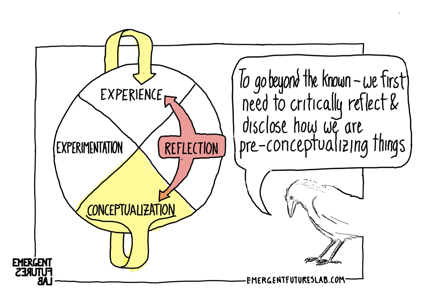 The fundamental problem and blind spot in this approach is that there is no awareness that our experiences, which are giving rise to what we believe are new concepts via conceptual activity (brainstorming and the imagination), are already pre-conceptualized by a robust, standardized, and conservative ecology of practices, embodied habits, tools, and environments…
